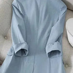 Silje | Perfekt blazer markerer en ædel balance mellem klassisk snit og nutidig raffinement. Den skræddersyede pasform fremhæver taljen uden at hæmme bevægelsen, mens markerede skuldre og en flatterende silhuet vidner om omtanke og arv. Den enkle ensidige knaplukning udtrykker tidløs elegance, og dekorative revers samt manchetter tilfører diskret refinement. Vævet i en kvalitetsstofblanding, der er blød, glat og åndbar, står Silje som en garderobeinvestering med holdbar, tidsløs værdi og samlerappel — en blazer for dem, der værdsætter håndværk og arv.