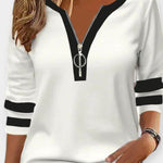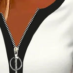 Ida | Langærmet lynlås er en eksklusiv top, der forener idrætsinspireret energi med moderne elegance og tidløs luksus. Den V-hals med diskret lynlås og det markante farveblok-design giver et sofistikeret udtryk til både hverdag og særlige lejligheder. Den lette rayon- og elastanblend sikrer komfort og bevægelsesfrihed hele dagen, mens kontraststriberne tilfører en diskret sportslig karakter uden at gå på kompromis med tidløs kvalitet. Hver detalje fremhæver omhyggeligt håndværk og velovervejet design. Med fokus på håndværk og oprindelse produceres Ida i et begrænset antal for at bevare eksklusiviteten og den langsigtede værdi. Toppen appellerer til samlere og kvalitetsbevidste, der værdsætter tidløs elegance og alsidighed — den fungerer som både let lag og statement-stykke i garderoben.