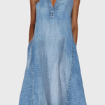 Karen Denim Kjole viser en tidløs elegance i en ærlig A-line silhuet. Det lette denimmateriale og den skånsomme snit giver sommergarderoben et løft, samtidig med at den naturlige karakter af denim udvikler en behagelig patina med tiden. Håndværket er arvemærket: kvalitetsmaterialer og en finish, der taler om omhyggelig produktion og lang levetid. Den V-hals med dekorative detaljer tilføjer sofistikeret femininitet, mens sidelommerne bevarer diskret funktionalitet. Midi-længden gør kjolen alsidig til både hverdags- og festlige øjeblikke. Begrænset antal tilgængelige enheder sikrer eksklusivitet og kollektionsværdi. Karen tilbyder en tidløst værdifuld tilføjelse, der kan bæres igen og igen uden at gå på kompromis med stil og komfort.