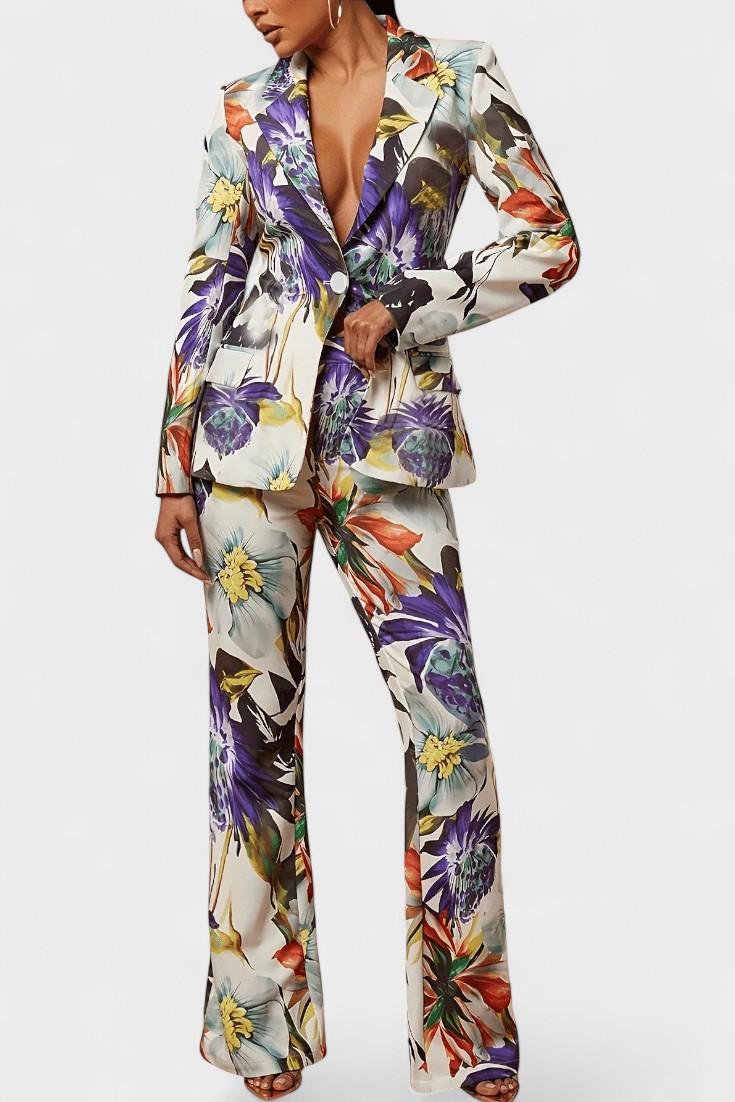 Kirstine | Sæt udstråler tidløs elegance og raffineret håndværk. Denne sammensatte dragt forener en struktureret blazer med et kunstnerisk blomsterprint, der tilfører personlighed uden at dominere looket. Håndværket og materialerne af høj kvalitet afspejler arv og omtanke, mens det lette, skimrende stof giver komfort og holdbarhed. Den klassiske snit skaber en balanceret silhuet, der passer til både særlige lejligheder og hverdagslooket. Med begrænset tilgængelighed lever Kirstine | Sæt en værdifuld investering i tidløs stil og samlerappel.