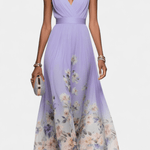 Ella | Maxi Kjole er et håndværksmæssigt statement i tidløs elegance. Kjolen er skabt i premium blomsterprintet chiffon, der flyder let og bevæger sig med kroppen og giver et friskt sommerudtryk. Den A-liniede silhuet med en naturlig V-hals forlænger linjerne og løfter looket, mens maxi-længden og den fuldt foret konstruktion giver komfort og dækkende finish. Begrænset produktion sikrer eksklusivitet og samlerværdi – Ella er en investering i tidløs kvalitet for dem med krævende smag.