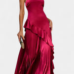 Laura | Rynket Kjole forener moderne design med feminin elegance og omhyggeligt håndværk. Den er skabt i nøje udvalgte materialer, hvor kvalitet og detaljer står i centrum, og éns skulderudskæring tilfører et contemporært, sofistikeret præg. Den flydende silhuet følger bevægelsen og giver fremragende komfort gennem aftenen, mens de delikate rynkede detaljer ved nederdelen tilfører subtil luksus og en tidløs elegance. Begrænset tilgængelighed understreger designhusets arv og gør Laura til en varig investering for særlige begivenheder. Dette er mere end en kjole; det er en erklæring om selvtillid og håndværkstraditioner, der giver rummelig stil gennem årtier.