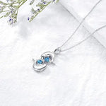 Sølv Halskæde med Dobbelt Delfiner og Blå Krystal