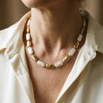 Vintage halskæde med rektangulære guld- og hvide perler