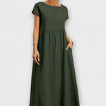 Pernille | Sidelommer kjole er en investering i tidløs elegance og håndværksmæssig omtanke. Kjolen kombinerer en let, åndbar pasform med en klassisk midilængde, der gør den alsidig til både hverdag og finere begivenheder. Den runde halsudskæring og de diskrete sidelommer bevarer den rene silhuet, mens materialer og snit vidner om et håndværk af høj kvalitet. Designet henvender sig til den moderne garderobe og fastholder sin værdi gennem en tidløs æstetik og komfort, som passer hele året. Den lette, luftige konstruktion giver fri bevægelse uden at miste form, og Pernille giver mulighed for alsidig styling – fra sommerlige sandaler til tilbehør, der løfter et mere raffineret look. Pernille er en klassiker i enhver samling, der værdsætter omtanke og kvalitet, og dens begrænsede tilgængelighed giver en naturlig samlerappel.