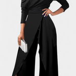 • Design og pasform: Den off-shoulder silhuet i Maja fremhæver nakke og skuldre, mens brede ben og sideslidser skaber bevægelsesfrihed og let elegance.