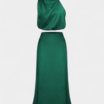 Ella | Sæt udtrykker luksus gennem brandets arv og perfektion. Hver detalje afslører håndværkets omhu: en draperet halterneck-top, en skulpturel silhuet og en åben ryg, der tilfører et moderne, sensuelt præg. Det lette stof bevæger sig med dig og garanterer velvære gennem hele dagen. To-delt designet giver alsidig styling til forår og sommer og forener lethed med raffinement i en tidløs æstetisk. Med begrænset oplag tilføjer Ella | Sæt eksklusivitet og en langtidsholdbar værdi, der tiltaler samlere og modebevidste.