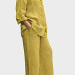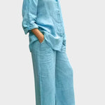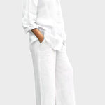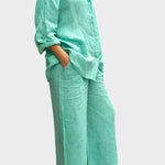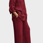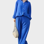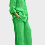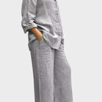 Signe | Åndbart sæt udstråler tidløs elegance og håndværksmæssig omtanke. Det vævede, åndbare materiale følger kroppens bevægelser og giver naturlig frihed, mens den løse top og de lige bukseben skaber en sofistikeret silhuet. Produceret i små partier med udvalgte materialer i respekt for nordiske designtraditioner, tilbyder Signe en tidløs grundstamme med lang levetid, der kan nedarves eller deles i kollektioner. Begrænset antal tilgængeligt understreger eksklusiviteten og giver sættet en bæredygtig, værdiopløftende appel.