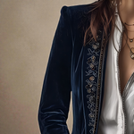 Denne jakke er skabt til dig, der ønsker et sofistikeret udtryk uden besvær. Det strukturerede snit fremhæver silhuetten, mens de fine broderidetaljer tilfører et tidløst og eksklusivt præg. Perfekt til både hverdagsbrug og mere elegante anledninger – en alsidig jakke, der udstråler stil og selvtillid.
