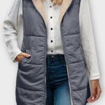 • Sherpa-fleece bagside: hyggelig komfort og afslappet stil ved skift mellem udtryk.