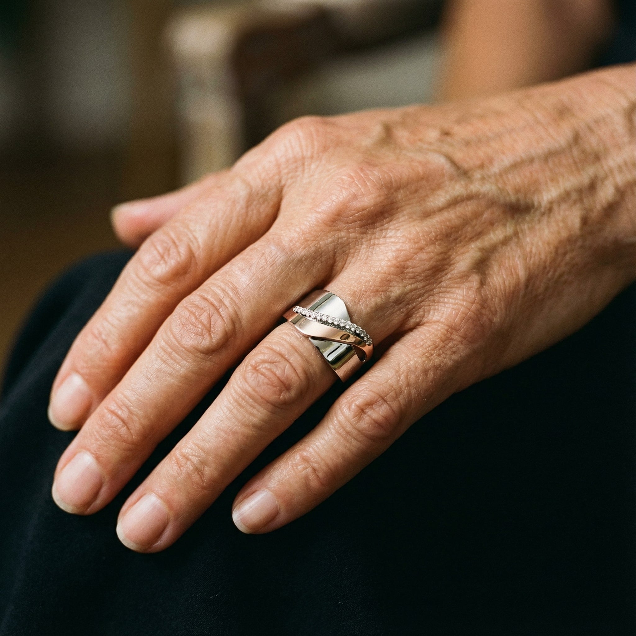 Vintage ring i rosaguld og sølv med zirkon