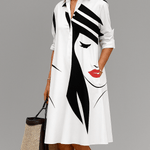 • Kunstnerisk print: Kunstnerisk sort-hvidt print tilføjer karakter uden at forstyrre kjolens elegante balance.