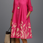 Sofie | Midi forener en tidløs silhuet med en betagende botanisk inspiration. Den intense fuchsia kombineret med et cremehvidt blomsterprint skaber et kunstnerisk, men underordnet statement, der passer lige så naturligt til hverdagsglamour som til særlige lejligheder. Håndværket afspejler en arv af kvalitet og omtanke gennem omhyggelige snit og finish, der tåler tidens vågne øje. Bevidst begrænset produktion gør Sofie | Midi til et ægte samlerobjekt – en kjole med tidløs værdi uden prætentiøsitet. Den lette konstruktion giver komfort hele dagen og gør kjolen ideel til havefester, terrassedage og overgangene mellem dag og aften.