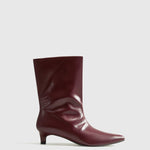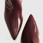Disse stilrene bordeaux ankelstøvler er indbegrebet af minimalistisk elegance. Med deres slanke silhuet, spidse snude og diskrete kitten heel tilbyder de en raffineret og moderne tilgang til hverdagsstøvlen. Den blanke finish og det glatte overmateriale giver et luksuriøst udtryk, der let kan styles op eller ned – perfekt til både kontoret og middagen efter arbejde.