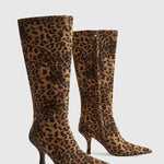 Knæhøje leopardstøvler til kvinder med stilet hæl