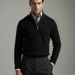 Tobias™ | Zip Trøje med Mønster fra Leviana udmærker sig ved tidløs elegance og håndværk i høj kurs. Den strikkede mønster og den sofistikerede zip-silhuet afspejler omtanke for detaljer og materialer af premium kvalitet. Tobias™ forener klassisk komfort med moderne design og gør sig gældende som et statement i garderoben, passende til en afslappet aften ved pejsen eller en sofistikeret nat i byen. Med begrænset produktion og Levianas arv fremstår trøjen som en langsigtet investering i stil og samlerværdi.