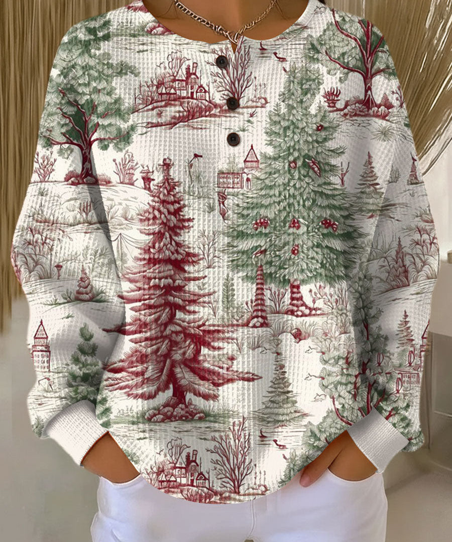 Inga™ - Julestriktrøje med klassisk træmotiv