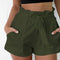 • Design og silhuet: Cecilie | Papirpose Shorts anvender Papirpose-talje design med justerbart snøreliv, hvilket fremhæver taljen og skaber en slank, konturfyldt silhuet.