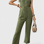 Helene | Jumpsuit er en gennemført, åndbar og alsidig statement i en tekstureret bomuldsblanding, der giver naturlig struktur og behageligt fald. Den flatterende V-hals fremhæver kravebenene, mens taljebæltet definerer form og personlig stil. Den lige silhuet er tidløs og nem at style til både brunch med vennerne og sommerens aftener. Med en håndværksmæssig finish og materialekvalitet står Helene som en tidsløs investering med en collector-appeal, der understreger eksklusiviteten ved en begrænset produktion.