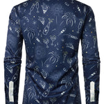 Herre Fyrværkeri Ferie Nytår Fest Knap-Op Blå Langærmet Skjorte