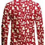 Herre Jule Rensdyr Rød Festlig Print Langærmet Skjorte