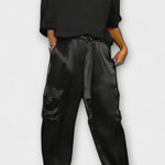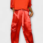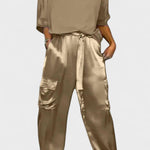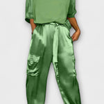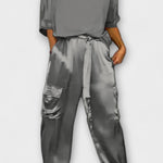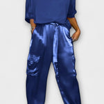 Ida | Silke sæt er et udtryk for uovertruffen komfort og en forfinet silhuet. Dette to-delte sæt i ægte silkestof glider let mod huden og giver et præsentabelt look, både derhjemme, på kontoret og til aftenarrangementer. Hver søm vidner om omhyggeligt håndværk, mens stoffets naturlige glans tilføjer en diskret luksus, der varer ved. Sættet kombinerer tidløs elegance med praktisk anvendelighed og understreger en arv af kvalitet og omtanke. En klassiker, der henvender sig til samlere og dem, der sætter pris på langtidsholdbar stil.