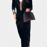 Karla | V-hals Luksus fremviser en gennemført silhuet og en tidløs elegance, der tiltaler dem, der sætter pris på håndværk og materialer af højeste kvalitet. Den dybe V-hals fremhæver konturen på en moderne måde, mens de lange ærmer tilføjer balance og raffinement. Den gyldne finish tilfører en diskret glans, der gør Karla til et særligt valg for galaer og særlige aftener. Hver detalje vidner om en arv af håndværk og udvalgte materialer, hvilket giver tidløs værdi og naturlig prestige. Med begrænset antal tilgængelige stykker bærer Karla en naturlig eksklusivitet. Designet signalerer en tidsløs æstetik og et ægte samlerobjekt, hvor hver bøjning og finish taler til varig luksus frem for kortvarig mode.
