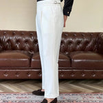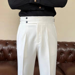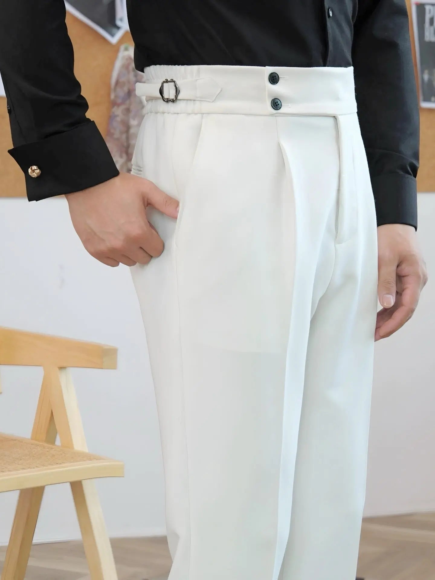 Marco™ | Sidetab Italia Bukser fremviser tidløs elegance gennem klassisk italiensk design og håndværk i særklasse. Den elastiske talje med sidelukning sikrer en ubesværet pasform og en diskreret, fløjelsblød fornemmelse, der passer til enhver lejlighed. Snittet bevarer en ren, sofistikeret silhuet, der respekterer traditionen uden at gå på kompromis med moderne komfort. Produktionen trækker på Sidetab Italia's arv af kvalitetsmaterialer og præcision, mens Leviana-brandets forpligtelse til langtidsholdbar stil giver en tidsløs værdi. Marco™ udstråler diskret luksus og er ideel til dig, der søger en garderobefundering, som aldrig går af mode. Fremhæv dit look med bukserne fra mærket Leviana.