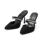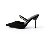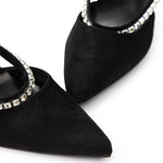 • Materialer og finish: Mette | Strass højhæle fremviser en sametagtig overflade og en skarp tå. Den høje kvalitet kommer til udtryk gennem kunstlæder og diskrete detaljer, der bevarer skønheden gennem årene.