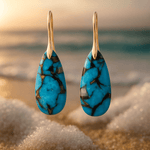 • Naturlige Turkis-sten med unikke farver og mønstre, hvert par bærer sin egen signatur.